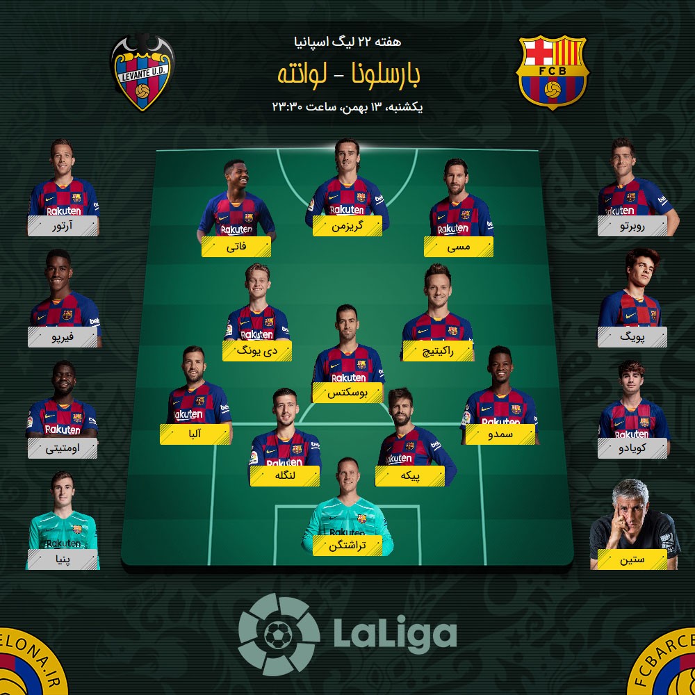 ترکیب بارسا برای مصاف با لوانتهترکیب بازی